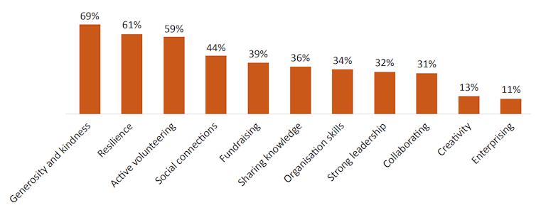 When asked what strengths their community showed following the bushfires, they included generosity and kindness (69%), resilience (61%) and active volunteering (59%).