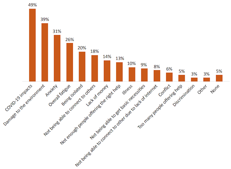When asked to identify the main challenges since the bushfire, COVID was named as the main challenge (49%), followed by damage to the environment (39%), anxiety (31%) and overall fatigue (26%).